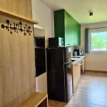 Goście mogą korzystać z wyposażonej kuchni z kuchenką mikrofalową, lodówką i przyborami kuchennymi do samodzielnego przygotowywania posiłków. Obiekt noclegowy znajduje się w bliskiej odległości od stacji kolejki linowej Wyciag Krasnal.